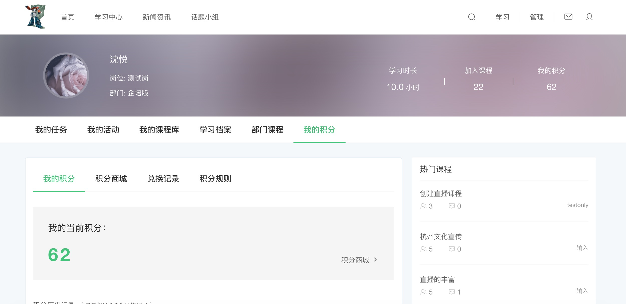 学员通过课程中学习与交流获取积分,